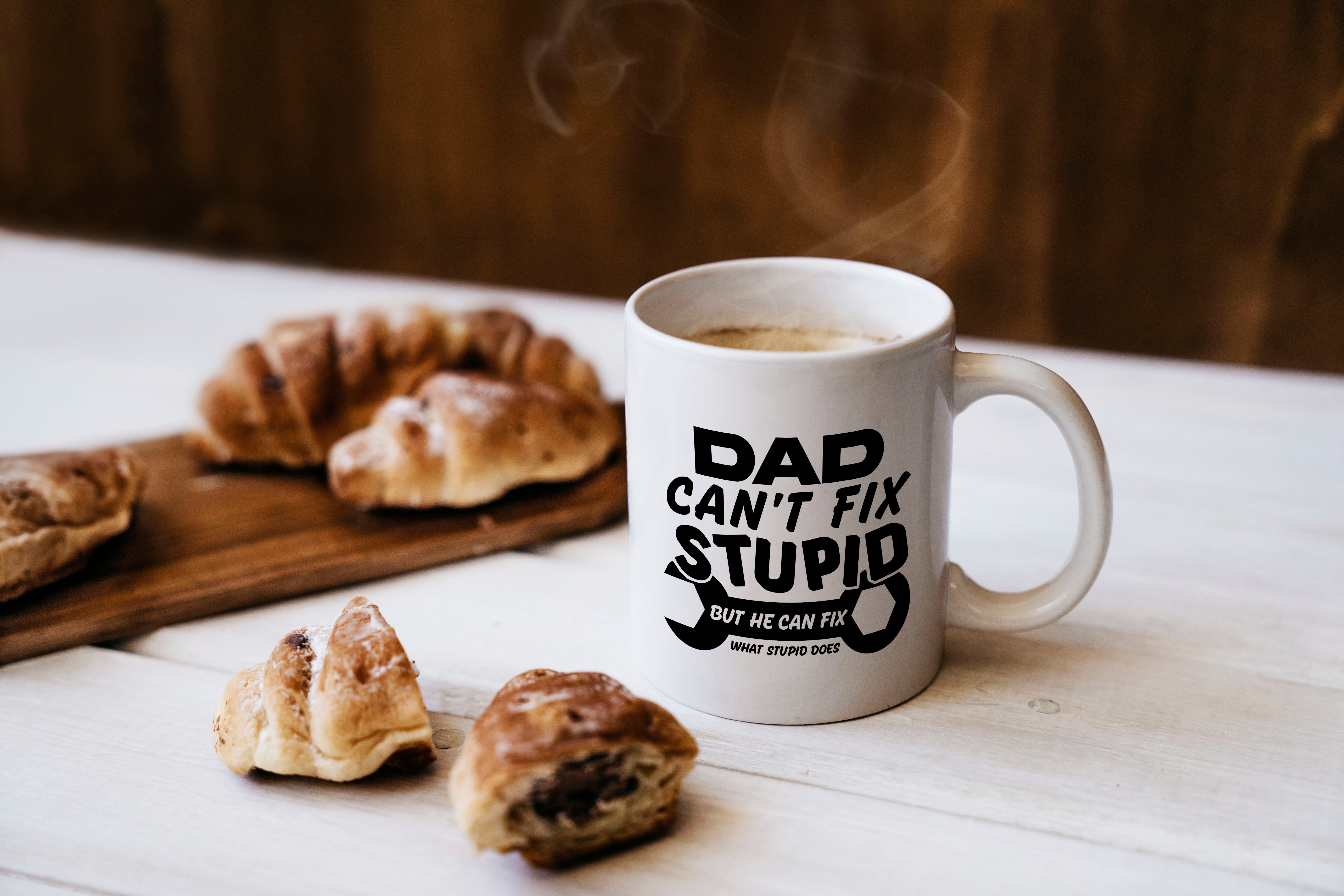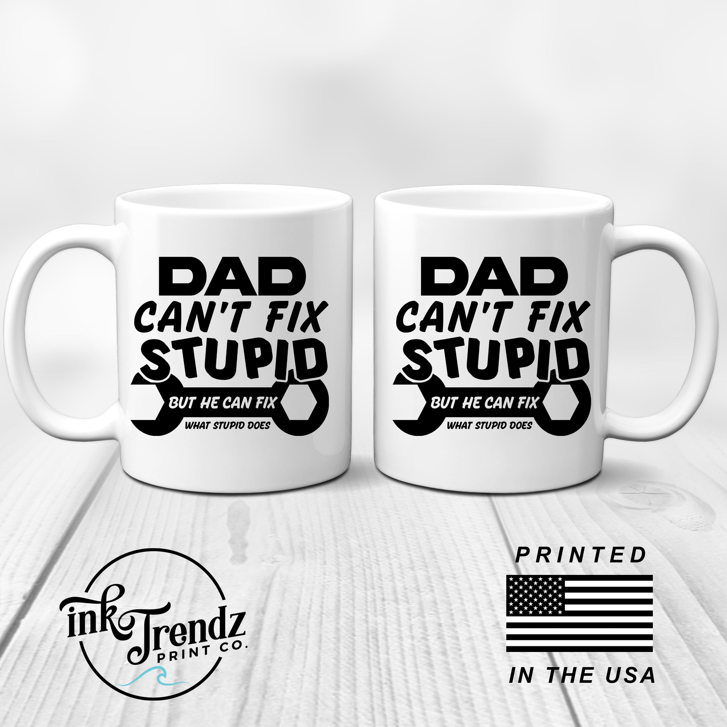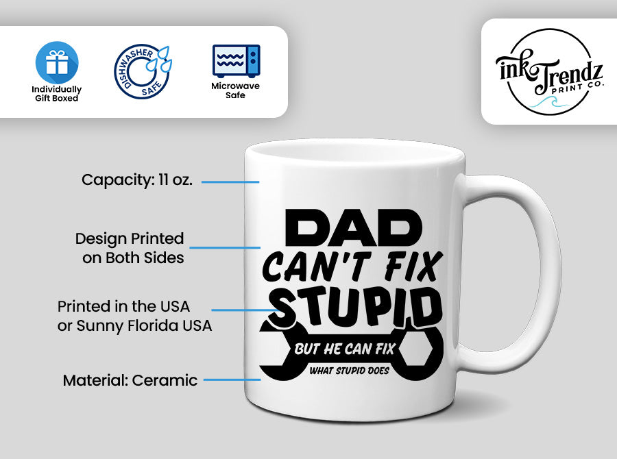 - Ink Trendz Dad Can't Fix Stupid But He Can Fix what Stupid Does Coffee Mug